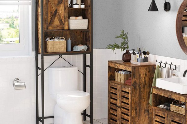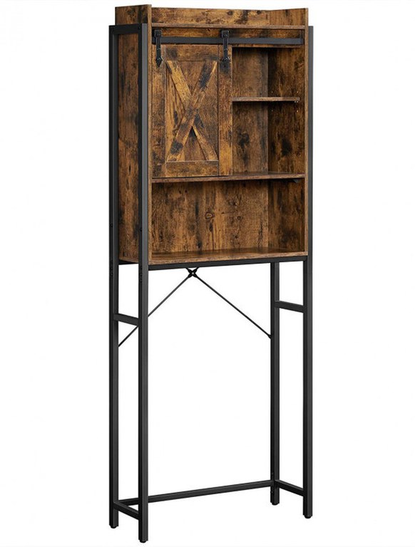 Specificații: Culoare: Maro rustic, Negru Material: Plăci PAL, Oțel Dimensiune produs: 64 x 24 x 171 cm (L x l x H) Greutate produs: 18,7 kg Max Capacitate totală de încărcare statică: 20 kg Conținut pachet: 1 x suport deasupra toaletei 1 x kit de asamblare 2 x kit anti-răsturnare 1 x instrucțiuni (EN, ES, DE, FR, IT)