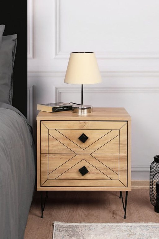 PAL Laminat 100% Grosime: 18 mm Picioare de Metal Lungime: 50 cm Inaltime: 55 cm Adancime: 40 cm Picior's Inaltime: 15 cm Două sertare Lungime sertar: 46 cm Durat inaltime: 17 cm Numar de Pachete: 1