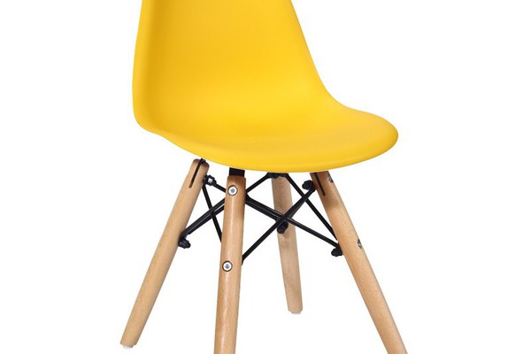 Scaun Julita pentru copii galben din plastic PP si lemn de fag natural 31x35x57.5 cm