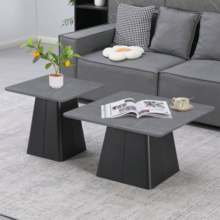 Set 2 buc. măsuțe de cafea Square, Negru-Gri Marmură — Eleganță modernă și funcționalitate Design și materiale de calitate Un duo sofisticat care aduce în living o prezență calmă și rafinată: blaturile cu aspect de marmură din sintered stone se sprijină pe o bază metalică solidă , conturând un ansamblu echilibrat și minimalist. Pentru a integra ușor piesele în decorul casei tale amintim și de texturi complementare precum Lemn PAL și Lemn MDF , care completează cromatica și oferă senzația de căldură. Design minimalist , finisaj marmură și structură durabilă sunt elementele care definesc aceste măsuțe. Funcționalitate și organizare Setul de două măsuțe oferă versatilitate: pot sta alăturate pentru un impact vizual puternic sau separate pentru funcțiuni clare în living. Dimensiunile complementare — masa mare 80 x 80 x 40 cm și masa mică 60 x 60 x 50 cm — permit aranjări practice pentru cafea, obiecte de decor sau tray-uri. Cu o amprentă stabilă , suprafață ușor de întreținut și configurație flexibilă , cele două piese răspund nevoilor tale estetice și de organizare. Montaj și întreținere Produsul se livrează neasamblat, în două colete, cu instrucțiuni pas cu pas incluse pentru un montaj ușor. Pentru curățare recomandăm utilizarea unei lavete moale și evitarea substanțelor abrazive pentru a păstra luciul sintered stone-ului. Neasamblat , ghid detaliat și piese incluse — toate concepute pentru o experiență fără bătăi de cap. Comandă acum și transformă-ți spațiul! Adaugă în coș setul Square și dă livingului tău o notă contemporană cu accente de marmură — stil și funcționalitate într-un singur click. Detalii tehnice complete Dimensiuni și greutate Dimensiuni produs: Masa mare 80 x 80 x 40 cm; Masa mică 60 x 60 x 50 cm Greutate produs: 35.2 kg Materiale și caracteristici Material corp: Metal / Sintered stone / Lemn PAL / Lemn MDF Material finisaj/tapițerie: Sintered stone (efect marmură) Culoare: Negru - gri marmură Număr pachete: 2 Montaj și pachet Stare asamblare: Neasamblat Conținut pachet: 2 x Măsuță Square, Accesorii de montaj, Instrucțiuni Manual de asamblare: Descarcă aici Stil și origine Stil: Modern Destinație recomandată: Living