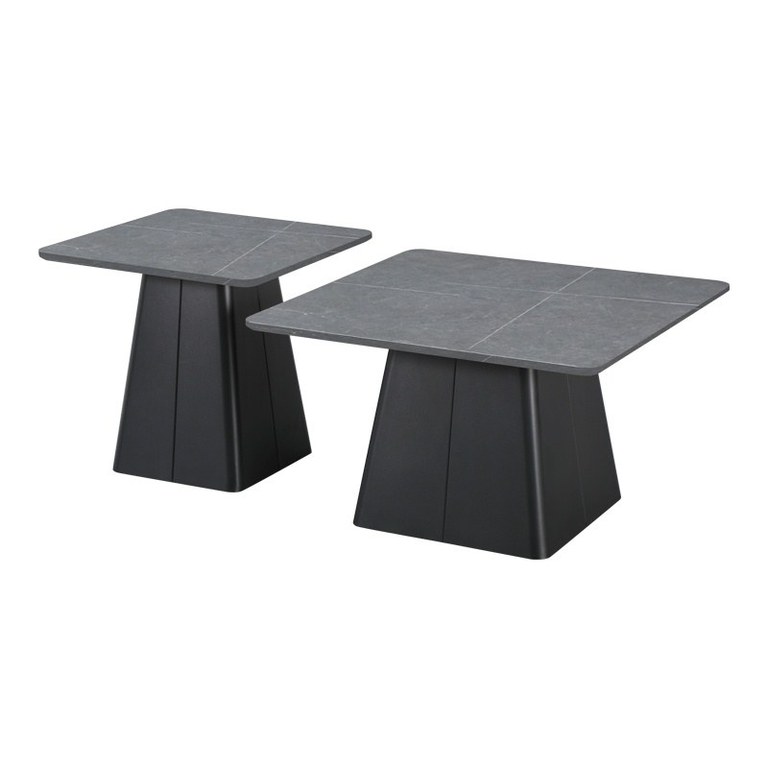 Set 2 buc. masute de cafea, Square, Negru, 80x80x50 cm
