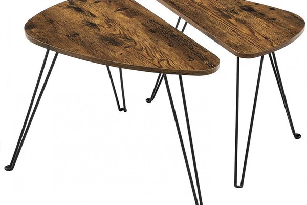 Specificații: Culoare: Maro rustic, Negru Material: Plăci PAL, Oțel Dimensiune masă mare: 60 x 38 x 47,5 cm (L x l x H) Dimensiune masă mică: 52 x 31,5 x 42,5 cm (L x l x H) Greutate totală a produsului : 5,7 kg Capacitate maximă de încărcare statică a suprafeței superioare: 5 kg Conținutul pachetului: 2 x Mese laterale 1 x Kit de asamblare 1 x Instrucțiuni (EN, FR, DE, ES, IT)