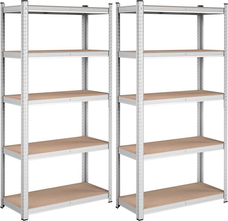Recunoscut rapid: cum depozitați ustensilele necesare după petrecerea la grătar sau camping? Doar să-i lași întinși în garaj? Nu. Păstrați-le ordonat în rafturile noastre de depozitare, astfel încât să puteți găsi totul rapid. Vă puteți baza pe: Unde doriți să depozitați uneltele grele? Lăsați-le unui profesionist - acest set de rafturi rezistente. Cadru din oțel ranforsat, bare transversale suplimentare, protecție împotriva înclinării - fiecare nivel de raft poate rezista la greutăți de până la 175 kg. O șansă pentru toată lumea: anvelope de mașină, cutii de scule sau găleți mari de curățare - indiferent dacă sunt articole mari sau mici, toate încap în aceste rafturi. Înălțimea raftului poate fi ușor reglată. De asemenea, puteți împărți unul dintre aceste rafturi în 2 mici. Economisiți timp prețios: asamblarea este simplă - nici măcar nu trebuie să strângeți șuruburile. De asemenea, instrucțiunile ușor de înțeles ajută la asamblare. Finalizează ansamblul în timp record și apoi dedică-te lucrurilor mai importante. Garaj, pivniță, atelier: Aceste 2 rafturi se potrivesc perfect în garaj, atelier, spălătorie, subsol sau magazin. Doar așezați-le acolo unde aveți nevoie de spațiu suplimentar de depozitare.