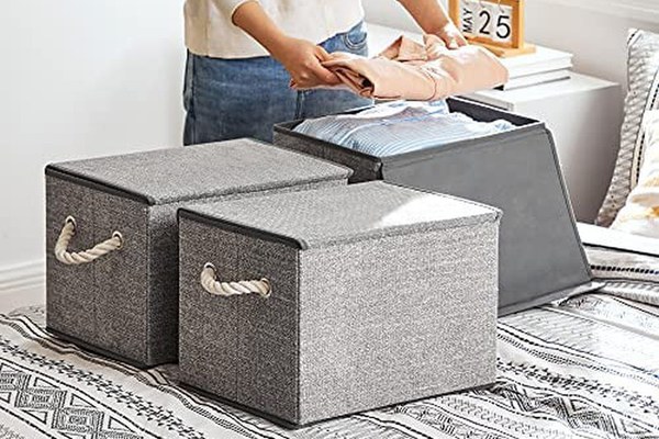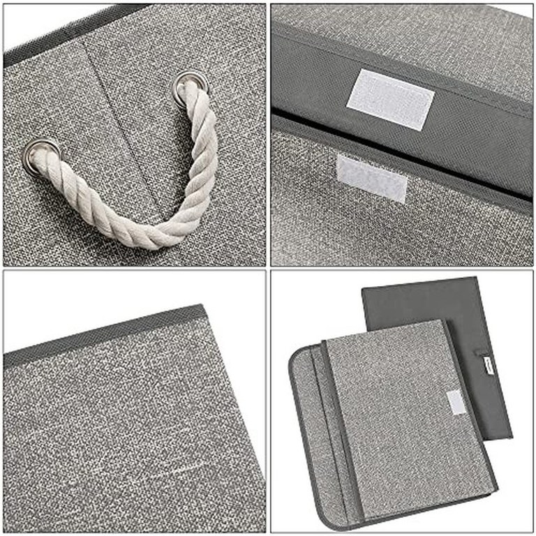 Vrei sa incercam? Aceste 3 cosuri cu efect de in au manere din bumbac in stil marin pentru a aduce o explozie de prospetime in casa dvs. Faceti o incercare! Ce aveti de gand sa depozitati? Haine in dormitor, jucarii in camera de joaca sau paturi in sufragerie? Toata dezordinea trebuie sa dispara in aceste cutii! Le-ai vazut manerele? Nu numai ca aceste cosuri de depozitare sunt mai puternice si mai durabile decat manerele din panza, dar aceste manere din bumbac permit o capacitate de incarcare mai mare. Incarcati fiecare cos cu pana la 10 kg! Pastrati-va lucrurile curate? O poti face cu aceste cutii de depozitare care au capace cu inchizatoare cu carlige si bucle! Gata cu cartile pline de praf! Buna ziua cu rufele care raman curate! Cum le asamblezi? Nimic nu poate fi mai usor! Pur si simplu desfasurati cosurile, introduceti fundul si puneti manerele! Nu le mai folositi? Pliati-le pentru a economisi spatiu!