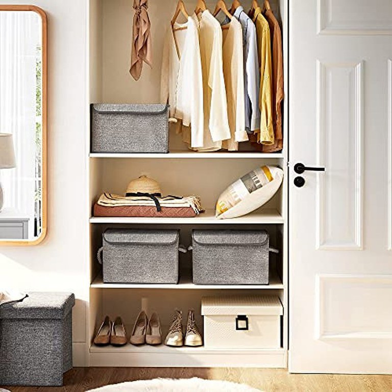 Set 3 cutii de depozitare, Songmics, Gri, 38x25x25 cm