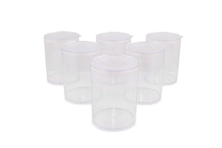 Set 6 cutii de depozitare alimente 100% plastic Dimensiune: 10 x 10 x 13,5 / 800 ml (6 bucăți) Poate fi spălat la mașina de spălat vase Nu poate fi folosit în cuptorul cu microunde