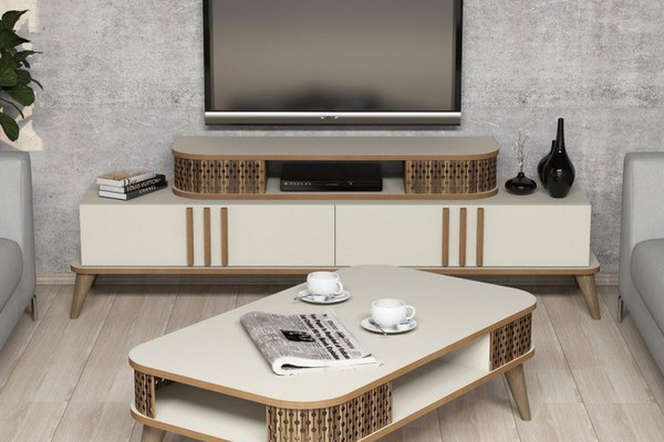 Set Comoda TV si Masuta de Cafea Living Eylül Cream