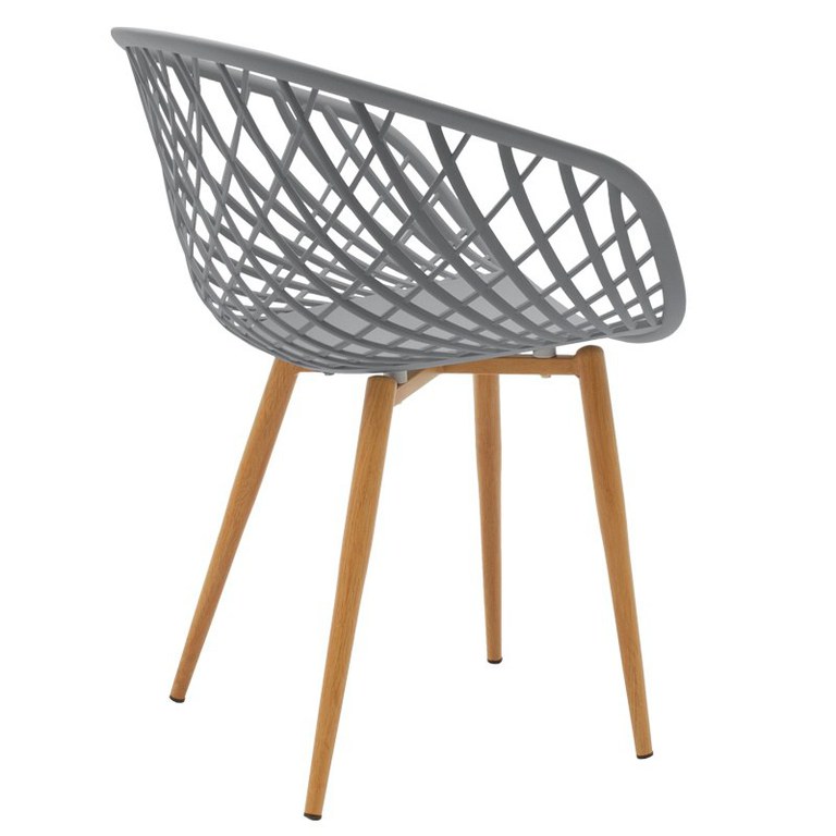 Set de 5 buc masa si scaune Ezra-Natali plastic PP-MDF culoare gri-alb cu picioare naturale 80x80x76 cm