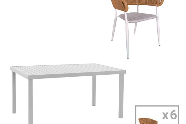 Set de 7 buc masa si scaune de gradina Kliton-Raven aluminiu alb 150x80x74 cm