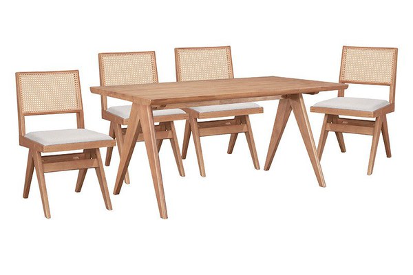 Set masa si scaune pentru sufragerie Winslow set 5 piese lemn de arbore de cauciuc, culoarea nuc deschis 160x85x75cm