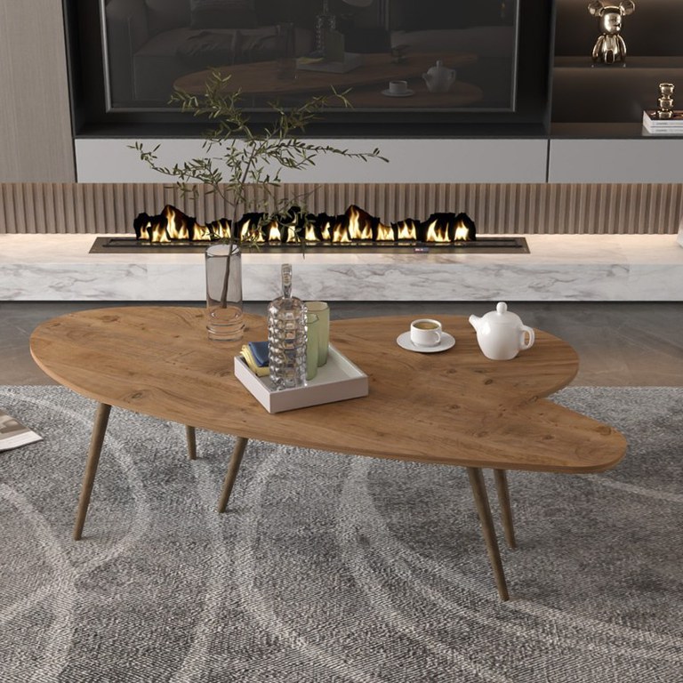 Set Masuta de cafea 2 buc Monty Natural - Eleganță modernă pentru livingul tău Design și materiale Setul de măsuțe de cafea Monty impresionează prin liniile curbe și forma sa modernă , fiind ideal pentru orice living. Fabricate din lemn PAL melaminat de înaltă calitate, aceste măsuțe sunt rezistente la uzură și la trecerea timpului, având un finisaj durabil care le conferă un aspect elegant. Culoarea principală a setului este natural , care se integrează perfect în orice decor. Funcționalitate și organizare Setul conține două măsuțe, una mare și una mică, care pot fi utilizate împreună sau separat, oferind flexibilitate în organizarea spațiului. Măsuța mare are dimensiuni de 116 x 46 x 46 cm, iar cea mică 77 x 45 x 43 cm, ceea ce le face ideale pentru a susține băuturi, cărți sau decorațiuni. Forma drop a măsuțelor adaugă un element de design atrăgător, fiind nu doar funcționale, ci și un adevărat punct de atracție în cameră. Montaj și întreținere Setul de măsuțe se livrează dezasamblat , dar nu-ți face griji! Pachetul conține toate piesele necesare și un ghid detaliat de asamblare pentru a-ți facilita montajul. Întreținerea este simplă; se recomandă curățarea cu o cârpă umedă și evitarea produselor abrazive. Inclus în pachet sunt piesele de mobilier și accesoriile necesare asamblării. Comandă acum Transformă-ți livingul cu setul de măsuțe Monty! Adaugă un strop de eleganță și funcționalitate în casa ta. Detalii tehnice complete Dimensiuni măsuța mare: 116 x 46 x 46 cm Dimensiuni măsuța mică: 77 x 45 x 43 cm Material: Lemn PAL melaminat Culoare: Natural Necesită asamblare: Da Pachetul conține: Piesele de mobilier, accesorii, ghid de asamblare Manual de asamblare: Vezi manualul Informații suplimentare Nu uita că nuanța produsului poate diferi ușor față de reprezentarea fotografică de pe ecran. Comandă acum Nu rata ocazia de a avea acest set elegant în casa ta! Comandă acum! Detalii tehnice extra: Greutate produs: 11 kg