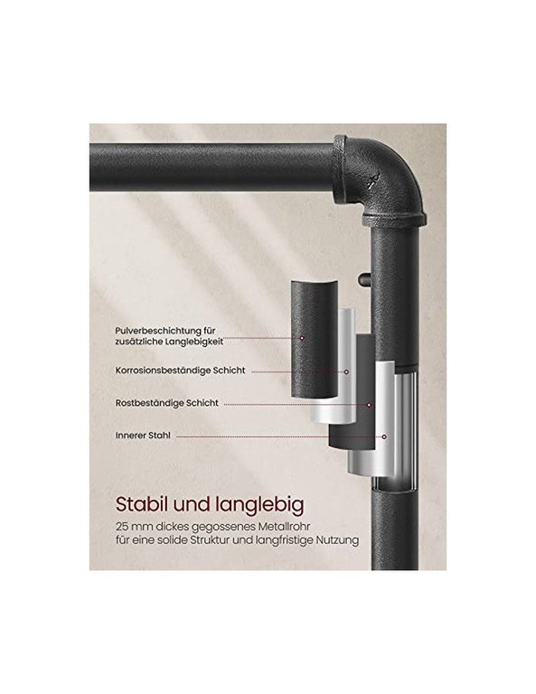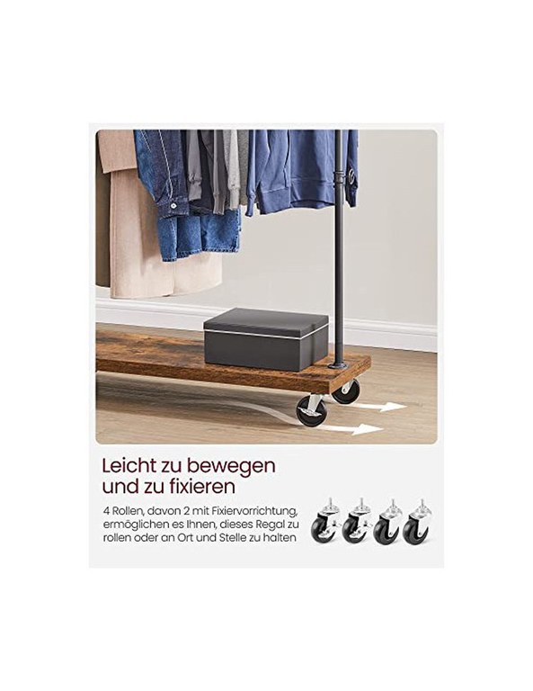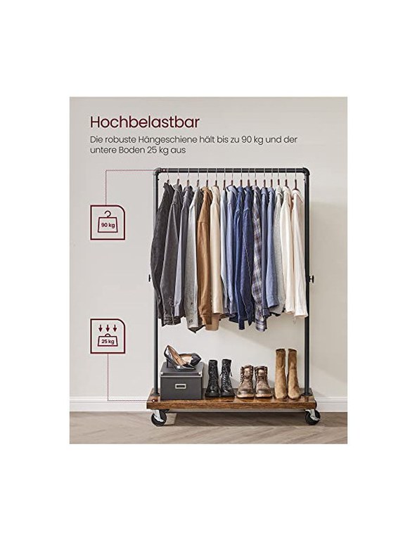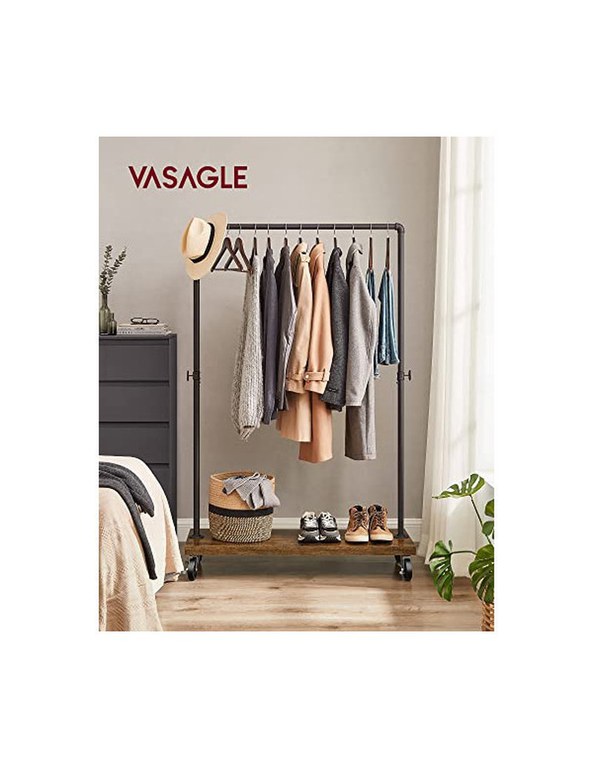 Suport pentru haine cu roti, Vasagle, 90 kg, HSR65BXV1, Maro Rustic