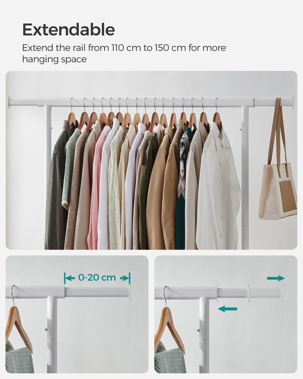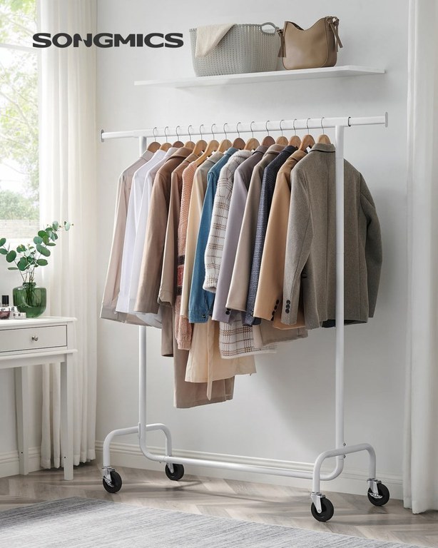 Suport pentru haine reglabil cu roti Songmics Alb 150x45x162.9 cm
