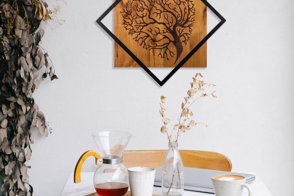 Tablou din lemn si metal Tree Nuc 54x54 cm