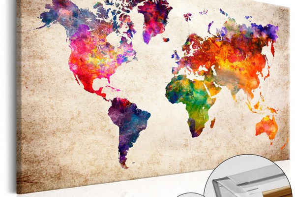 Tablou perforabil, din pluta, producator Bimago, potrivit pentru orice camera a casei tale. ✔ Producator Bimago, brand inovator în domeniul tablourilor decorative ✔ Imprimare de înaltă calitate, lucrare precisă și materiale ecologice de ultimă generație ✔ Cu ajutorul piunezelor puteți fixa pe mapă poze, notițe, sau marca locurile vizitate ✔ Mult mai ușor decât decorațiunile tradiționale pentru pereți ✔ Poate fi amplasat în orice loc din locuința sau din birou ✔ Este o idee excelenta pentru un cadou Cum să utilizați un panou decorativ din plută? ✔ Marcați-vă călătoriile realizate și călătoriile viitoare ✔ Creați o galerie de poze și amintiri din țările vizitate ✔ Adaugați notițe pentru a nu uita de locurile care merită vizitate ✔ Asigurați-le copiilor dumneavoastră o modalitate neconvențională de a învăța geografia Imprimeu de cea mai înaltă calitate! Un tip special de pânză combinat cu o rezoluție de imprimare adecvată garantează intensitatea culorilor și o claritate perfectă a imaginii. Părțile laterale imprimate Tabloul nu necesită rame adiționale și poate fi fixat imediat. Protecție UV Culorile nu se estompează chiar și la o expunere îndelungată la soare. Ambalaj sigur Înainte de expediere, tablourile noastre sunt împachetate în folie cu bule de aer, iar apoi într-un carton gros. Important: setul nu include piuneze.