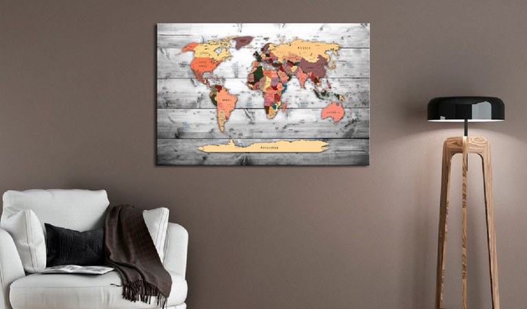 Tablou perforabil , din pluta, producator Bimago, potrivit pentru orice camera a casei tale. ✔ Producator Bimago, brand inovator în domeniul tablourilor decorative ✔ Imprimare de înaltă calitate, lucrare precisă și materiale ecologice de ultimă generație ✔ Cu ajutorul piunezelor puteți fixa pe mapă poze, notițe, sau marca locurile vizitate ✔ Mult mai ușor decât decorațiunile tradiționale pentru pereți ✔ Poate fi amplasat în orice loc din locuința sau din birou ✔ Este o idee excelenta pentru un cadou Cum să utilizați un panou decorativ din plută? ✔ Marcați-vă călătoriile realizate și călătoriile viitoare ✔ Creați o galerie de poze și amintiri din țările vizitate ✔ Adaugați notițe pentru a nu uita de locurile care merită vizitate ✔ Asigurați-le copiilor dumneavoastră o modalitate neconvențională de a învăța geografia Imprimeu de cea mai înaltă calitate! Un tip special de pânză combinat cu o rezoluție de imprimare adecvată garantează intensitatea culorilor și o claritate perfectă a imaginii. Părțile laterale imprimate Tabloul nu necesită rame adiționale și poate fi fixat imediat. Protecție UV Culorile nu se estompează chiar și la o expunere îndelungată la soare. Ambalaj sigur Înainte de expediere, tablourile noastre sunt împachetate în folie cu bule de aer, iar apoi într-un carton gros. Important: setul nu include piuneze.