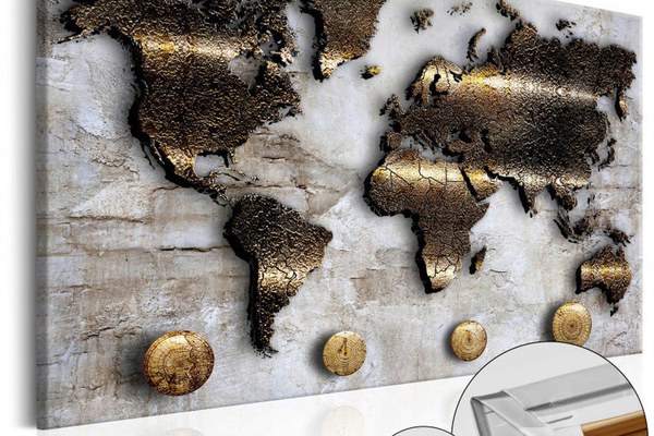Tablou din plută - Golden Journey [Cork Map] 90x60 cm