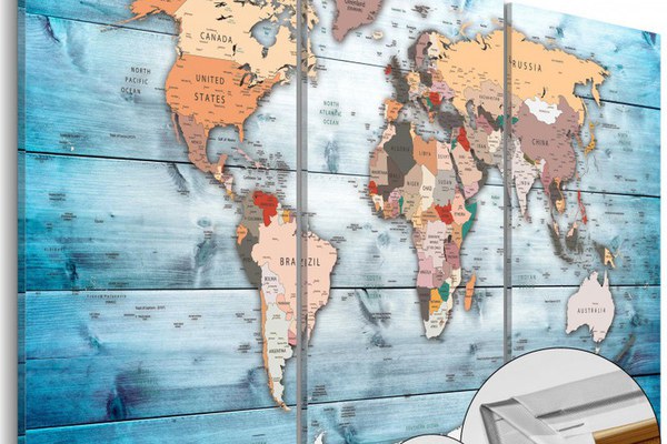 Tablou perforabil, din pluta, producator Bimago, potrivit pentru orice camera a casei tale. ✔ Producator Bimago, brand inovator în domeniul tablourilor decorative ✔ Imprimare de înaltă calitate, lucrare precisă și materiale ecologice de ultimă generație ✔ Cu ajutorul piunezelor puteți fixa pe mapă poze, notițe, sau marca locurile vizitate ✔ Mult mai ușor decât decorațiunile tradiționale pentru pereți ✔ Poate fi amplasat în orice loc din locuința sau din birou ✔ Este o idee excelenta pentru un cadou Cum să utilizați un panou decorativ din plută? ✔ Marcați-vă călătoriile realizate și călătoriile viitoare ✔ Creați o galerie de poze și amintiri din țările vizitate ✔ Adaugați notițe pentru a nu uita de locurile care merită vizitate ✔ Asigurați-le copiilor dumneavoastră o modalitate neconvențională de a învăța geografia Imprimeu de cea mai înaltă calitate! Un tip special de pânză combinat cu o rezoluție de imprimare adecvată garantează intensitatea culorilor și o claritate perfectă a imaginii. Părțile laterale imprimate Tabloul nu necesită rame adiționale și poate fi fixat imediat. Protecție UV Culorile nu se estompează chiar și la o expunere îndelungată la soare. Ambalaj sigur Înainte de expediere, tablourile noastre sunt împachetate în folie cu bule de aer, iar apoi într-un carton gros. Important: setul nu include piuneze.