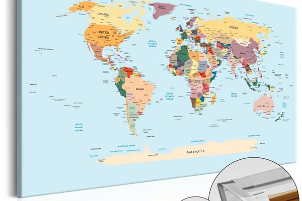Tablou perforabil , din pluta, producator Bimago, potrivit pentru orice camera a casei tale. ✔ Producator Bimago, brand inovator în domeniul tablourilor decorative ✔ Imprimare de înaltă calitate, lucrare precisă și materiale ecologice de ultimă generație ✔ Cu ajutorul piunezelor puteți fixa pe mapă poze, notițe, sau marca locurile vizitate ✔ Mult mai ușor decât decorațiunile tradiționale pentru pereți ✔ Poate fi amplasat în orice loc din locuința sau din birou ✔ Este o idee excelenta pentru un cadou Cum să utilizați un panou decorativ din plută? ✔ Marcați-vă călătoriile realizate și călătoriile viitoare ✔ Creați o galerie de poze și amintiri din țările vizitate ✔ Adaugați notițe pentru a nu uita de locurile care merită vizitate ✔ Asigurați-le copiilor dumneavoastră o modalitate neconvențională de a învăța geografia Imprimeu de cea mai înaltă calitate! Un tip special de pânză combinat cu o rezoluție de imprimare adecvată garantează intensitatea culorilor și o claritate perfectă a imaginii. Părțile laterale imprimate Tabloul nu necesită rame adiționale și poate fi fixat imediat. Protecție UV Culorile nu se estompează chiar și la o expunere îndelungată la soare. Ambalaj sigur Înainte de expediere, tablourile noastre sunt împachetate în folie cu bule de aer, iar apoi într-un carton gros. Important: setul nu include piuneze.