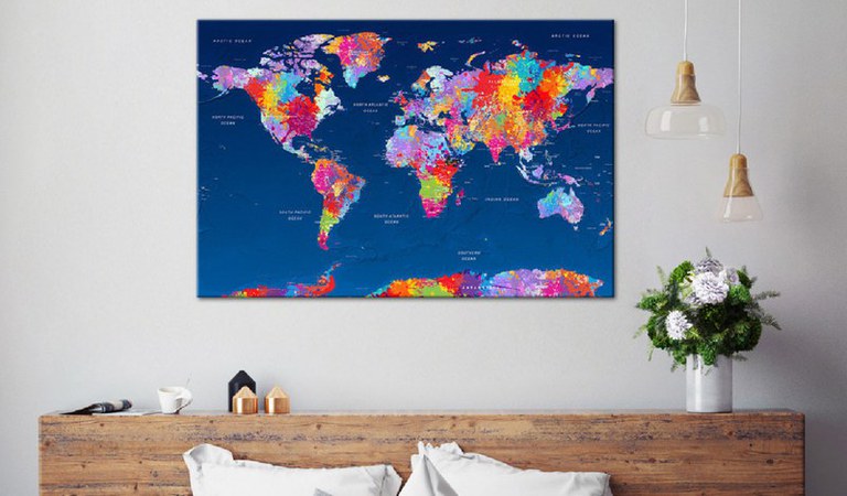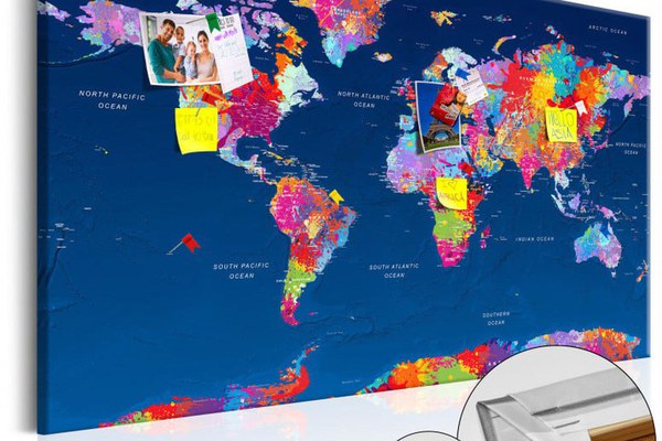 Tablou perforabil , din pluta, producator Bimago, potrivit pentru orice camera a casei tale. ✔ Producator Bimago, brand inovator în domeniul tablourilor decorative ✔ Imprimare de înaltă calitate, lucrare precisă și materiale ecologice de ultimă generație ✔ Cu ajutorul piunezelor puteți fixa pe mapă poze, notițe, sau marca locurile vizitate ✔ Mult mai ușor decât decorațiunile tradiționale pentru pereți ✔ Poate fi amplasat în orice loc din locuința sau din birou ✔ Este o idee excelenta pentru un cadou Cum să utilizați un panou decorativ din plută? ✔ Marcați-vă călătoriile realizate și călătoriile viitoare ✔ Creați o galerie de poze și amintiri din țările vizitate ✔ Adaugați notițe pentru a nu uita de locurile care merită vizitate ✔ Asigurați-le copiilor dumneavoastră o modalitate neconvențională de a învăța geografia Imprimeu de cea mai înaltă calitate! Un tip special de pânză combinat cu o rezoluție de imprimare adecvată garantează intensitatea culorilor și o claritate perfectă a imaginii. Părțile laterale imprimate Tabloul nu necesită rame adiționale și poate fi fixat imediat. Protecție UV Culorile nu se estompează chiar și la o expunere îndelungată la soare. Ambalaj sigur Înainte de expediere, tablourile noastre sunt împachetate în folie cu bule de aer, iar apoi într-un carton gros. Important: setul nu include piuneze.