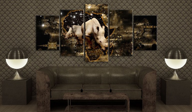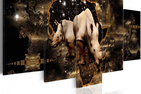 Tablou - Golden Rhino 100x50 cm