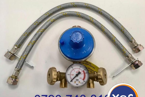 Kit accesorii complet pentru racordare 2 butelii la centrala termica pe GPL. Contine: -Minicentralina cu 2 robineti, manometru, racorduri si regulator -Niplu redus -Filtru anticondens si antiimpuritati, lavabil -Racord galben pentru centrala Kitul complet cu butelii contine: -2 butelii de 50L sau 80 L; -Minicentralina cu 2 robineti, regulator, suport de prindere si racorduri incluse; -Niplu redus pentru conectare minicentralina cu filtru; -Filtru anticondens si antiimpuritati cu filet de 3/4 sau 1/2; -Racord centrala cu filet de 3/4 sau ½; Preturi: -Kit 2 butelii de 50L cu regulator pentru centrale de 20-28Kw: 1 800 lei -Kit 2 butelii de 50L cu regulator pentru centrale de 28-35Kw: 1950 lei -Kit 2 butelii de 80L cu regulator pentru centrale de 24-28Kw: 2 150 lei -Kit 2 butelii de 80L cu regulator pentru centrale de 28-35Kw: 2 250 lei Pentru siguranta Dvs va recomandam sa achizitionati si kitul detector cu electrovalva, la pretul de 399 lei. La cerere, produsele se pot achizitiona si separat, in functie de necesitatile clientului. Livrarea se face gratuit la kit-ul complet oriunde in tara, in 2 zile lucratoare, cu plata la primirea coletului.