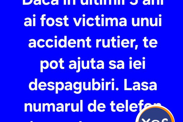 Te-ai confruntat cu un accident auto recent și nu știi ce pași să urmezi? Vrei să te asiguri că primești despăgubirea corectă pentru daunele suferite? Ești la locul potrivit! 🔍 **Ce îți oferim?** - Asistență completă în obținerea despăgubirilor pentru vehicule de până la 5 ani vechime a cazului. - Consultanță personalizată pentru fiecare caz în parte. - Expertiză în negocierea cu companiile de asigurări. 🌟 **Știai că:** Există aspecte legate de despăgubirile auto pe care nu le cunoști și care te vor uimi? De exemplu, multe persoane nu știu că pot obține despăgubiri și pentru daunele morale sau costurile de închiriere a unei mașini pe perioada reparațiilor! 💡 Nu lăsa lipsa de informații să te dezavantajeze! Contactează-ne acum și îți vom explica toate detaliile care te pot ajuta să obții maximum de la polița ta de asigurare. Lasa numarul de telefon si numele complet si te vom contacta noi. Fara costuri in avans sau costuri ascunse! Transformă-ți neplăcerile într-o experiență pozitivă! Suntem aici să te ajutăm! 🛠️✨
